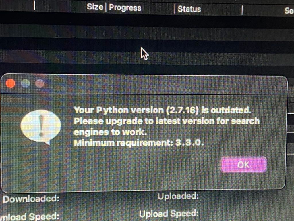 If you are on OSX (Mac), you might get the error Your Python version (2.7.16) is outdated. Please upgrade to latest version for search engines to work.