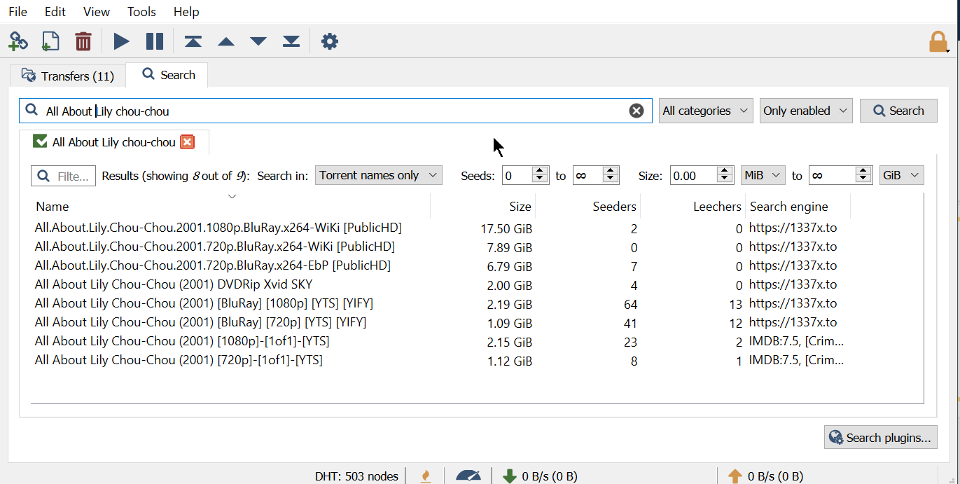 Now simply enter any movie you're looking for into the search bar, and torrent results will come up.