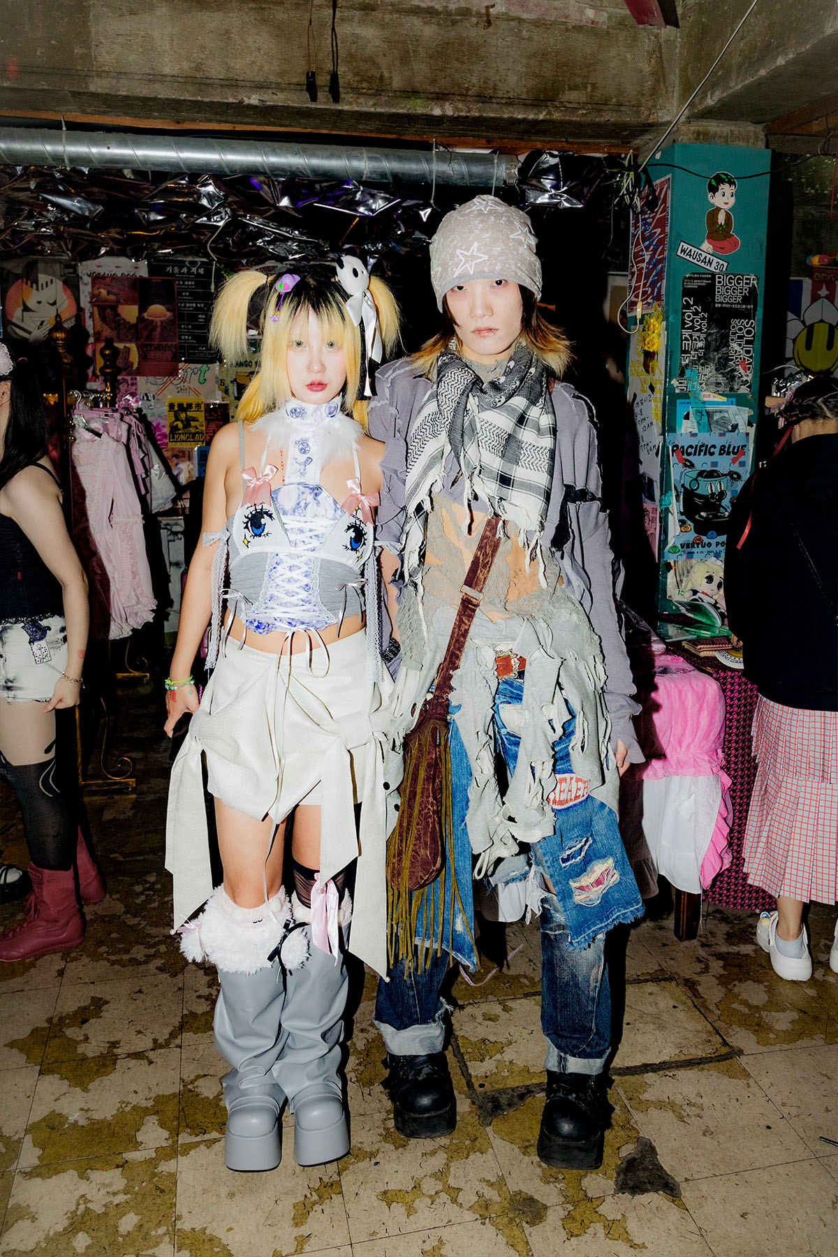 Seoul’s underground interests me. There’s a good energy here which we want to participate in and help accelerate while it’s still underground. The party brought out a lot of fashionable girls and it was good to see them raving, I don’t think they’re introduced that kind of music often but they were into it. Though I was surprised very few Korean alt guys showed up, I think they're more interested in rap. I heard they think those kind of Y2K egirls are scary. I think it’ll be more balanced as we do more parties.