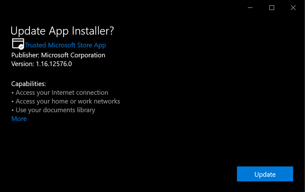 First, install the App Installer package in the Windows Store if you don't already have it.