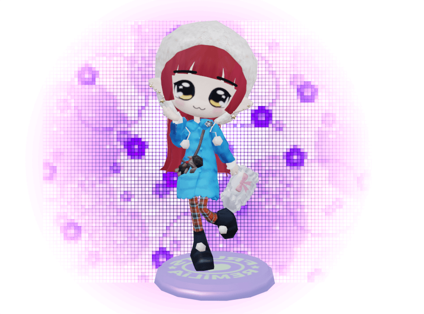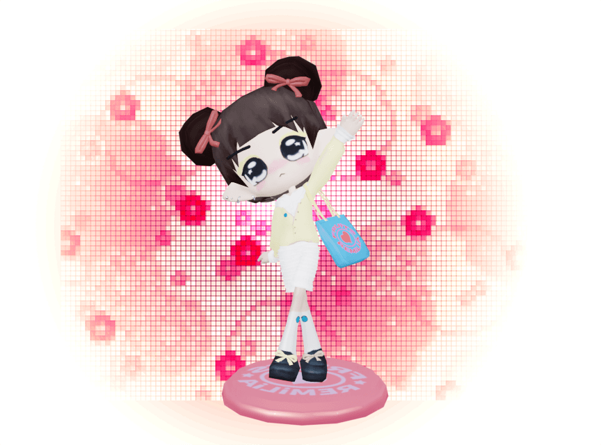 Kagami’s are formatted to be translatable into physical bead art and bag charms, and test the limits of expressing stylish J-Fashion aesthetics in a highly limited pixel format. The dessert themed color girls are inspired by the playful aesthetic-racial clashes of the gyaru style.