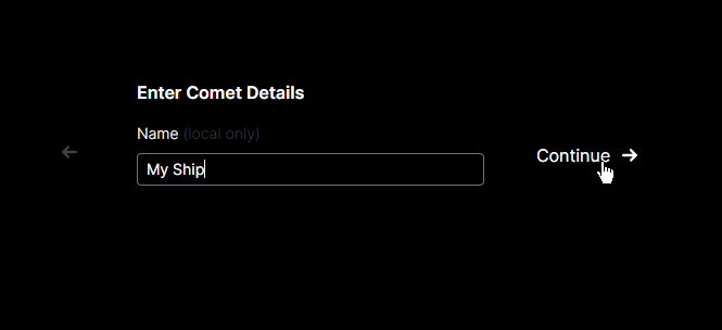 Create a name for your comet. This is only for your own reference, useful when running multiple accounts. Then Continue.