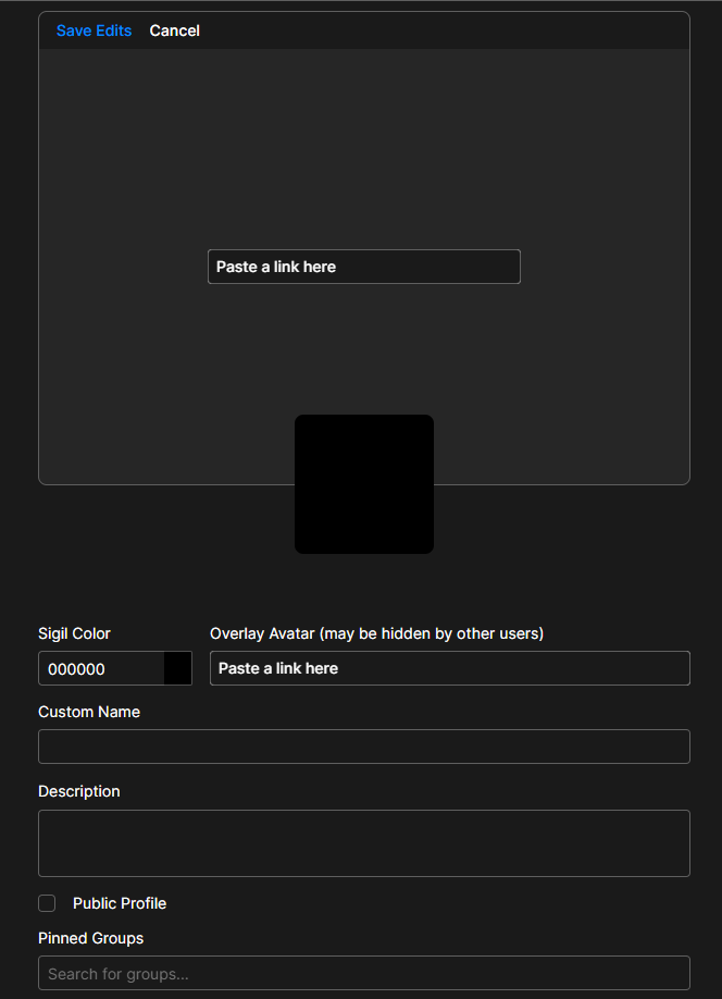 From here you can add a profile picture, banner, set a custom username among other things to personalize your account. Note - images need to be url's to files on the web.