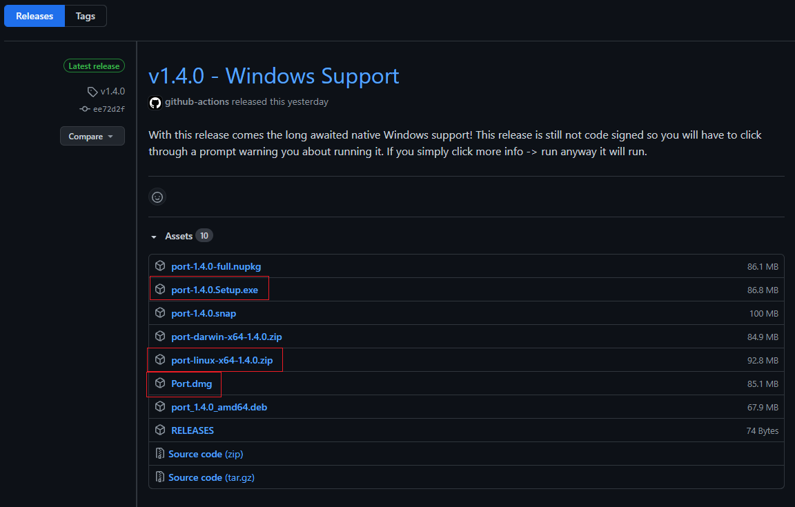Head over to to the install page, then find the installer for Windows (ends with .exe), OSX (ends with .dmg) or Linux (ends with .zip):